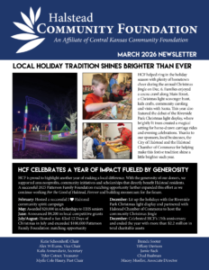 The Halstead Community Foundation (HCF) is a public, charitable foundation transforming the Halstead community by making a difference right here at home. HCF was established in 2010 as an affiliate of the Central Kansas Community Foundation. Local leaders wanted to facilitate charitable giving opportunities for current, former and future residents of Halstead to make a lasting impact for generations to come. Governed by a board of directors with a diverse presence in the community, the foundation is working for positive change and is charged by the momentum of key leaders.