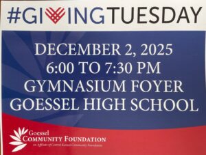 Giving Tuesday is a National Day of Giving, plus a day of volunteer recognition and appreciation. Join us at the Goessel High School as we share about the community work of the Goessel Community Foundation. This event will also be the kickoff for our 2025 Patterson Family Foundation Match Campaign. Come learn more about this and how to get involved.